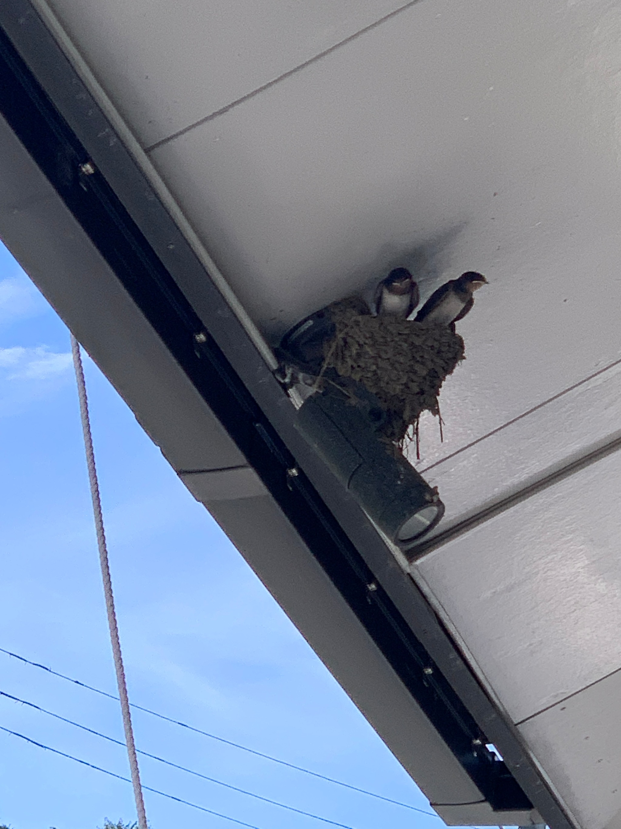 巣には2羽の雛鳥がいて、他の子は既に巣立ったのかもしれません(前に見た時は5羽くらいいたので)