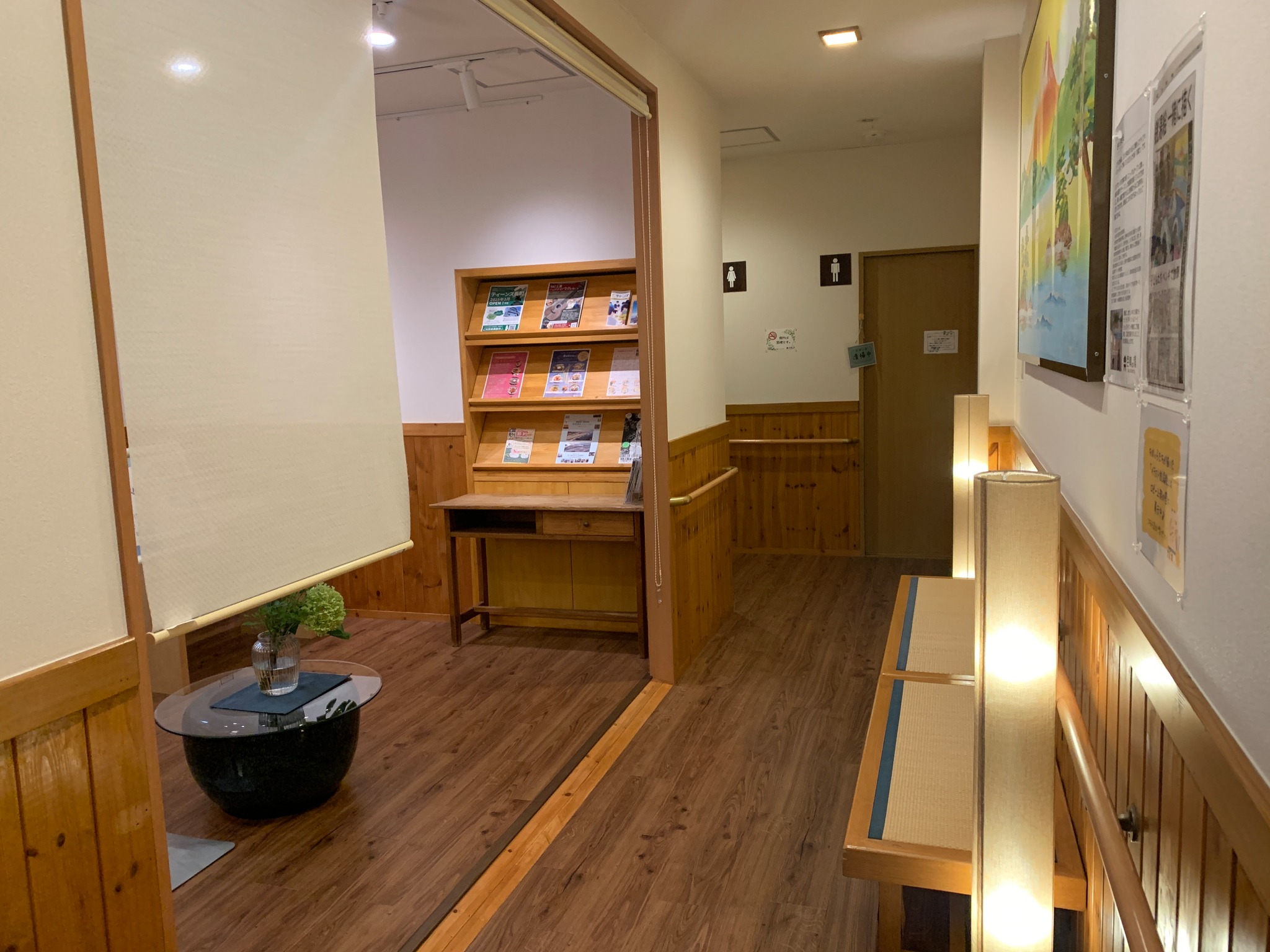 涼み処に、パンフレット関連を陳列している棚がございます。