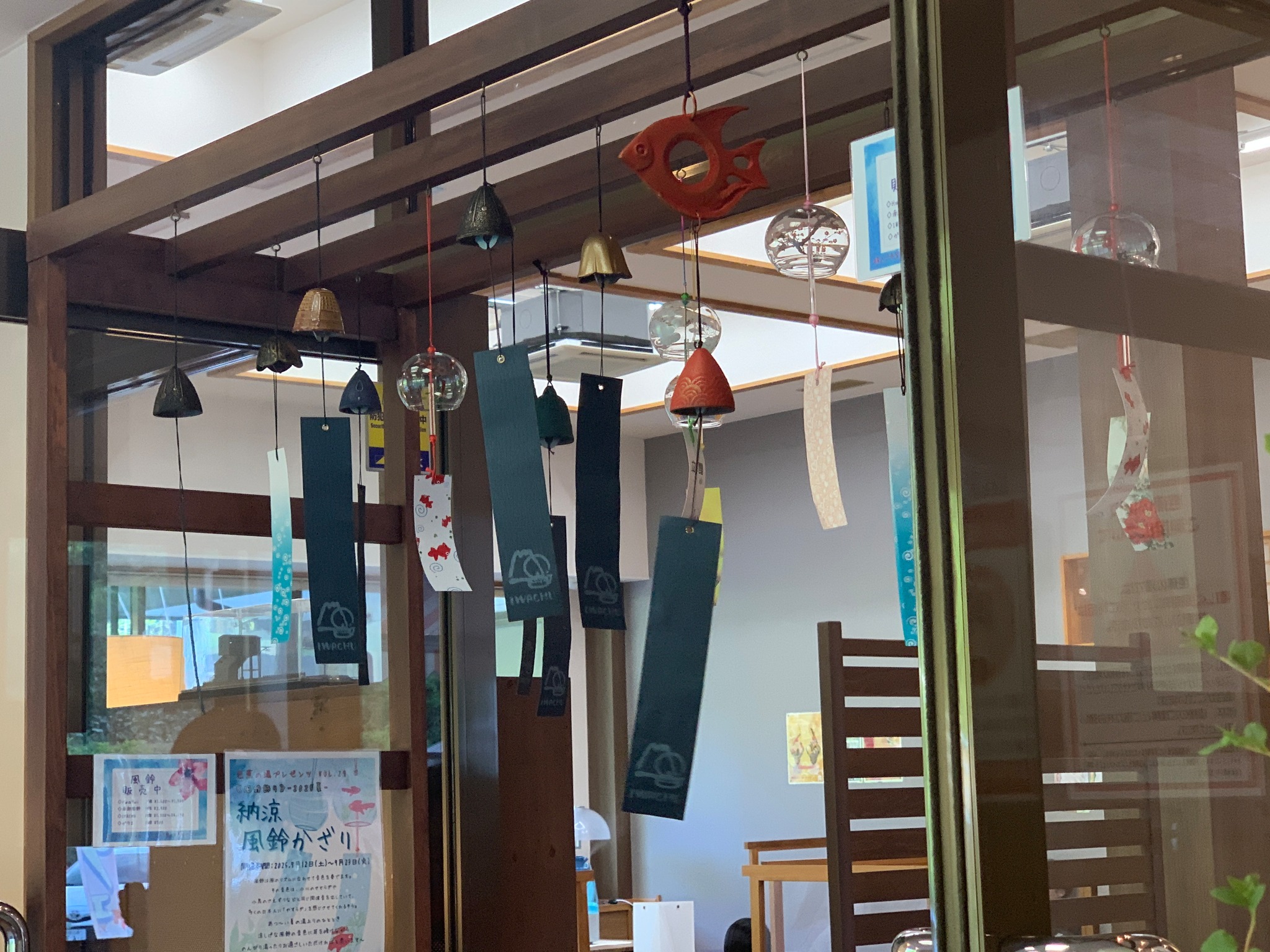 入り口には風鈴がたくさん並んでいて、風の通り道になっているので、チリンチリンと涼し気で素敵な音が鳴っています。