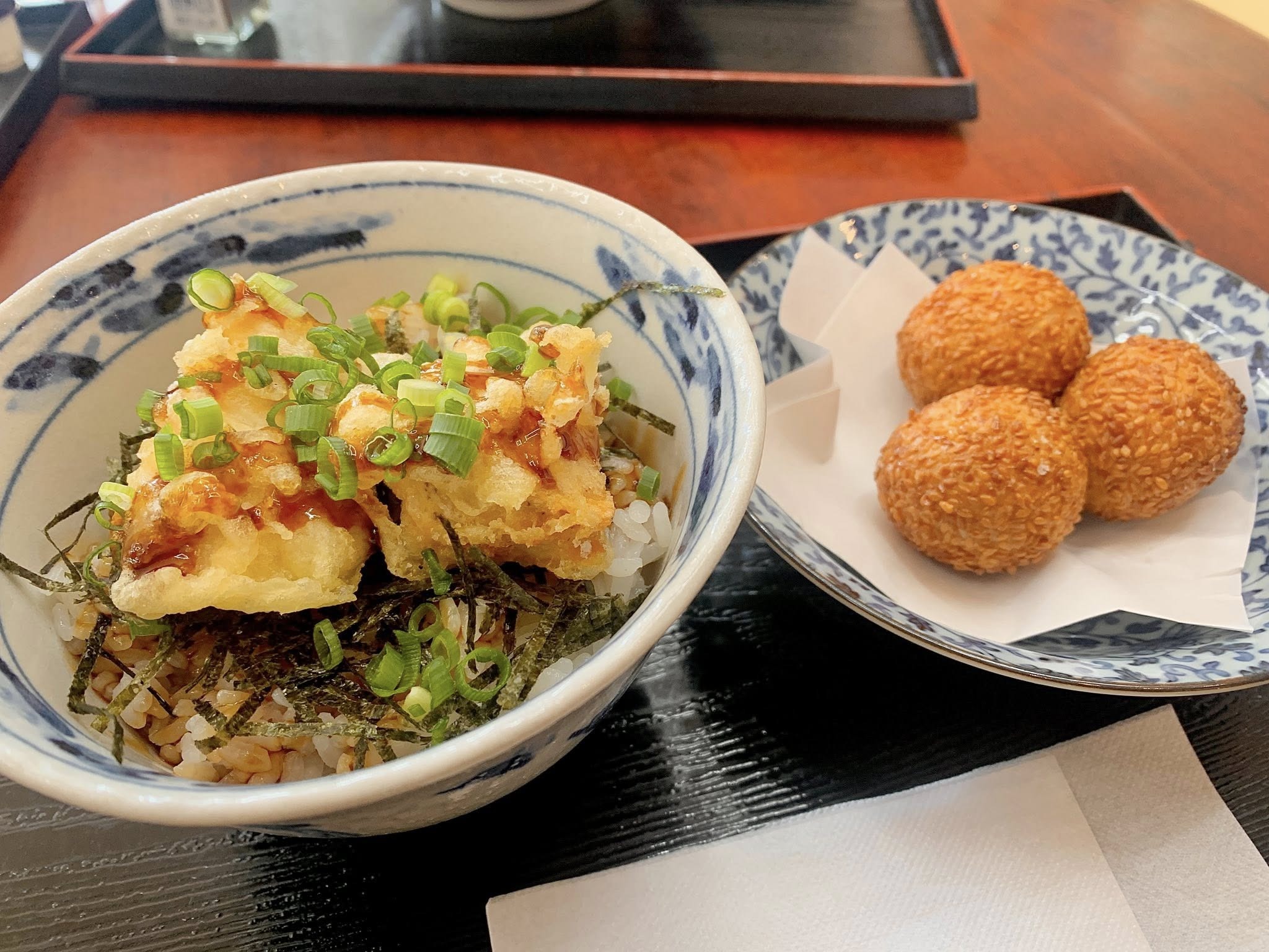 私はミニとり天丼とゴマ団子にしました( ̄▽ ̄)美味しいです~